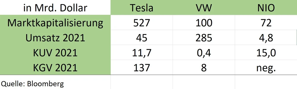 Tesla ist die Aktie der Stunde, der Elektroautobauer hat eine Marktkapitalisierung in Höhe von über 500 Milliarden Dollar erreicht. Ein starkes Stück: Obwohl etwa der VW-Konzern 20-mal so viele Autos baut, ist Tesla an der Börse um den Faktor fünf wertvoller. Denn Anleger glauben fest daran, dass Tesla besonders gut für die Zukunft gerüstet ist.