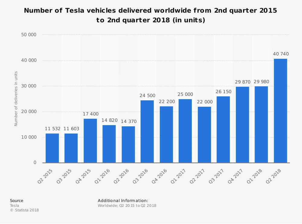Tesla made 0 cars in 2011, but will make around 500k in 2019