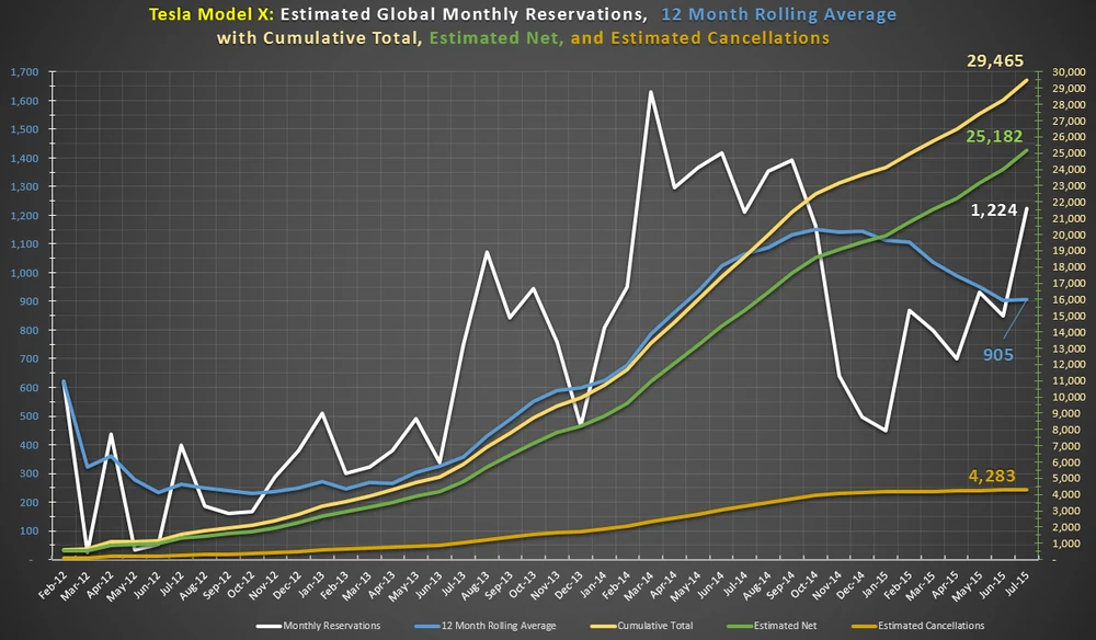 Wie EV Inside berichtet, sind neue Absatzzahlen des Model S bzw. Daten zur Vorbestellung des Model X bekannt. Beim Model X, das im September eingeführt werden soll, seien die Vorbestellungen im Juli auf 29.465 Autos gestiegen. Im Juni waren es nur 28.200 Einheiten. Beim Model S hingegen ging die Zahl der Absätze im letzten Monat stark zurück. Im Juli konnten nur 1.600 Autos verkauft werden. Über 40 Prozent weniger als noch im Juni.