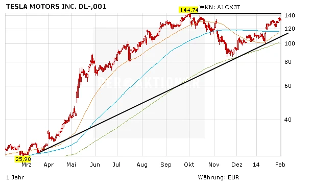 Wie es sich wohl derzeit anfühlt, bei einem der erfolgreichsten Autohersteller zu arbeiten? Bei einem, der den Automarkt aufmischt und diesen kräftig durch einander wirbelt. Bei einem, der die traditionellen Hersteller zum umdenken zwingt. "Wir haben derzeit jede Menge Spaß und wir haben große Ziele", sagt der Schweizer Regionalleiter Jochen Rudat gegenüber DER AKTIONÄR. Tesla, mit Sitz im Sonnenstaat Kalifornien, stiehlt mit seinen hippen Elektroflitzern derzeit Audi, BMW, Daimler und Volkswagen gehörig die Show. Apropos Show. Die Auto Messe in Detroit nutzten die Elektroautopioniere von Tesla um gleich zu Beginn die Aufmerksamkeit der Journalisten auf sich zu ziehen. Elon Musk präsentierte zwar keinen neuen Elektroflitzer, dafür hatten es die Zahlen für das vierte Quartal in sich. 20 Prozent lagen die Absätze von Tesla im vierten Quartal über den Erwartungen.