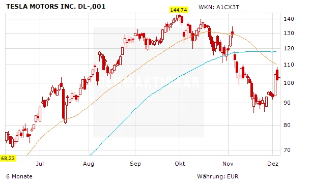 Am Dienstag mussten im Hoch 144,70 Dollar für die Tesla-Aktie bezahlt werden – im Vergleich zum Vortagesstand entsprach das einem Plus von 16,5 Prozent. Der Grund für den Freudensprung war eine Mitteilung des Kraftfahrtbundesamtes, wonach bei den jüngsten Fahrzeugbränden in den USA und Mexiko nach "Aktenlage kein herstellerseitiger Mangel als unfallursächlich" festgestellt werden konnte (DER AKTIONÄR berichtete).