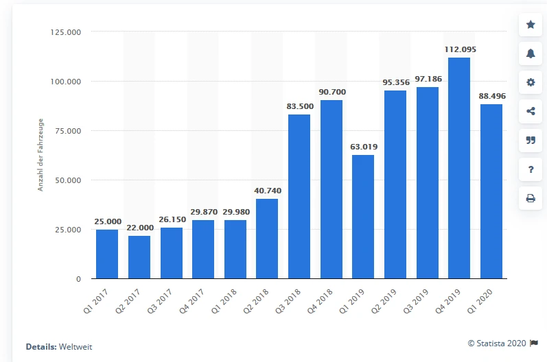 Vorteil 3: Eine immer wichtigere Rolle spielt für Tesla der chinesische Markt. Machte Tesla im Reich der Mitte im Jahr 2019 einen Umsatz von nur zwei Millionen Dollar, werden die Erlöse in den nächsten Jahren extrem ansteigen.