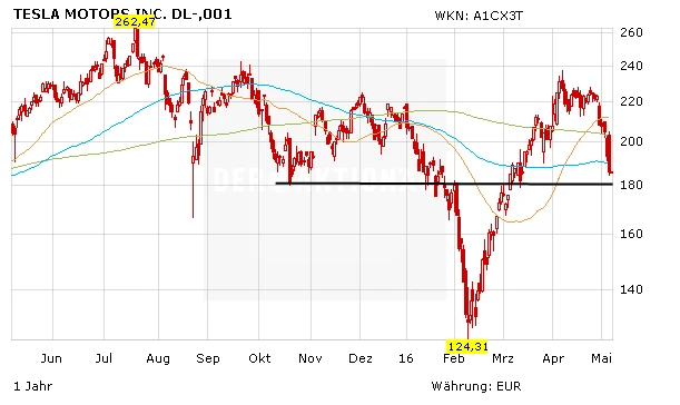 Zur guten Stimmung der Anleger trug aber auch bei, dass Tesla die Auslieferungsprognose für dieses Jahr von bis zu 90.000 Fahrzeugen bestätigte. Im ersten Quartal lieferte Tesla rund 15.500 Autos aus, für das laufende Vierteljahr sind 17.000 anvisiert - im Rest des Jahres wird die Firma also noch deutlich zulegen müssen. Unter anderem gehe die Produktion des neuen SUV Model X immer noch zu langsam hoch, räumte Tesla ein.