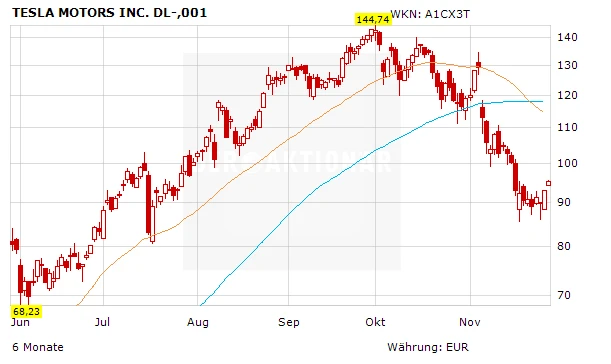 Die Tesla-Aktie hatte in den letzen Wochen keinen leichten Stand, nachdem drei Fahrzeuge Feuer gefangen hatten. Vom Allzeithoch bei 194,50 Dollar verlor der Titel 40 Prozent an Wert. Am Montag ging es aber wieder deutlich nach oben.