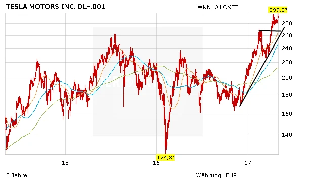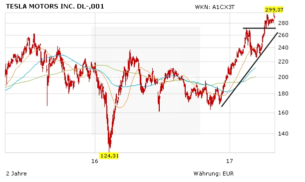 Angeblich Will Elon Musk mit seinem Team im Juli die Produktion anfahren und 5.000 E-Autos des Typ Model 3 bauen. 2018 sollen dann 10.000 Autos pro Woche gebaut werden. Ehrgeizige Ziele. In der Tesla-Aktie steckt nach wie vor jede Menge Phantasie.