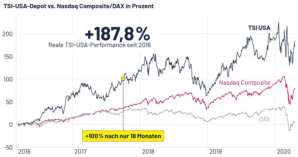 Man mag zu Tesla stehen wie man will – die Aktie war jedenfalls einer der absoluten Topperformer des letzten Jahres. Auch bei Ballard Power wurde vielen Anlegern der Trend irgendwann zu „heiß“ – einerseits verständlicherweise. Doch es wäre äußerst profitabel, diese Rallye sehr lange mitzugehen. Wie man auf gewinnbringende Weise in starke Trends investiert (und wann man sie besser wieder verlässt) zeigt das TSI USA-System seit Jahren anhand einer sehr hohen Outperformance auf. Die jüngste Entwicklungsstufe des TSI-Systems macht das mit konsequenten Ein- und Ausstiegen sowie eines eigens hierfür entwickelten Risikomanagementsystems möglich. Einmalig bis zum 3. Mai läuft nun eine Einsteiger-Aktion zum Testen.