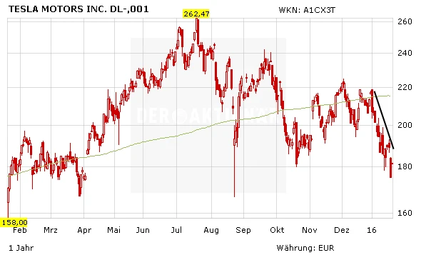 In einem sehr schwachen Gesamtmarkt ist auch die Tesla-Aktie zuletzt deutlich unter Druck geraten. Inzwischen notiert das Papier auf einem Achtmonatstief. Zwar bringen die guten Elektroauto-Neuigkeiten aus China und Deutschland für das Tesla-Papier neue Fantasie, doch aufgrund der schwachen Charttechnik halten sich Anleger derzeit zurück. Zudem sollte nicht vergessen werden, dass Tesla weiterhin rote Zahlen schreibt.