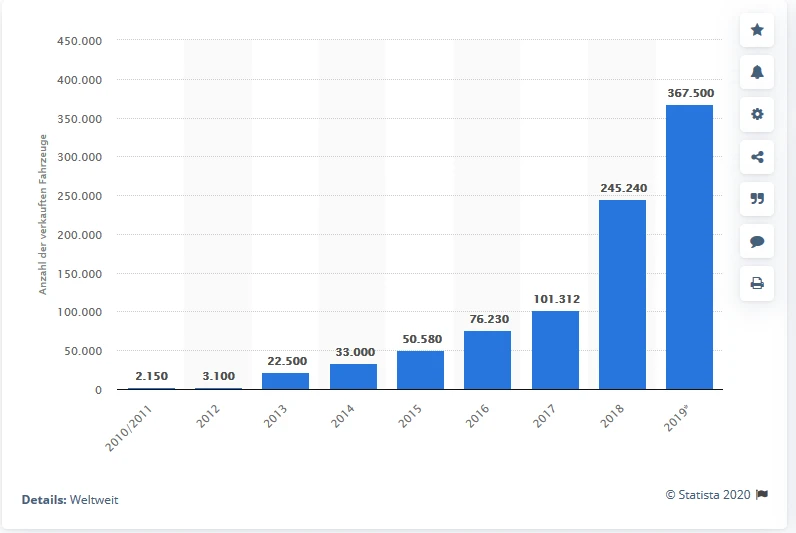 Die Anleger honorieren derzeit die Position im Bereich der Elektroautos sowie die Tatsache, dass Tesla die Batterien für seine Autos selbst fertigt. Hier drohen in Zukunft massive Engpässe. "Tesla wird in 10 Jahren mehr als zwei Millionen Neuwagen verkaufen. Tesla hat eine wahnsinnige Wachstumsdynamik und wird 2030 auf Augenhöhe mit BMW und Mercedes spielen. Tesla hat die Denke von Tech-Unternehmen und die ist unendlich dynamisch“, sagt Auto-Experte Ferdinand Dudenhöffer.