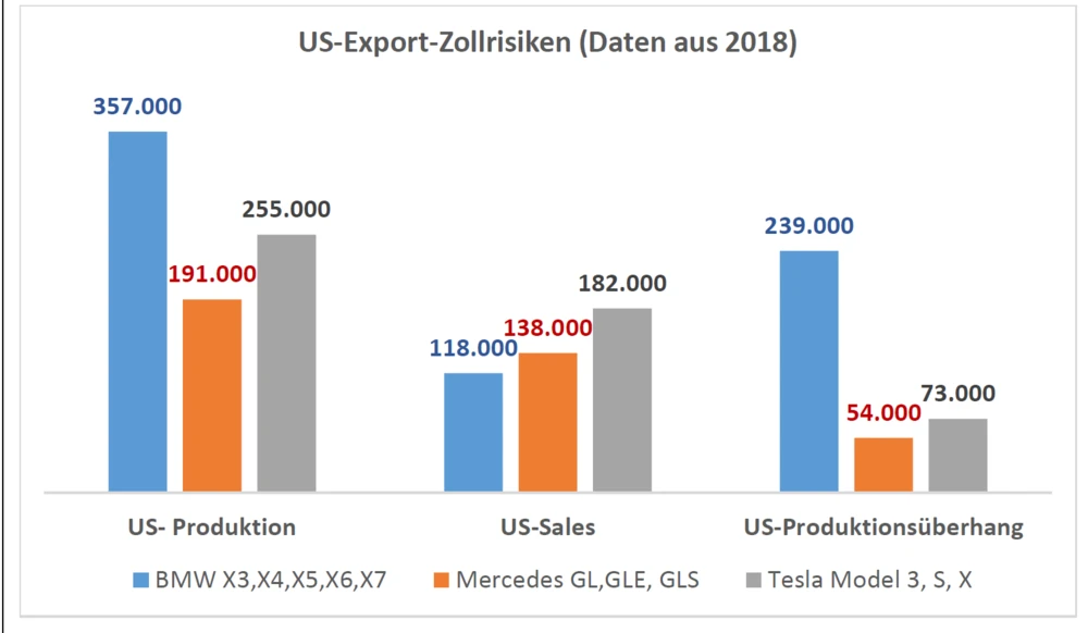 Das Model S ist bereits sehr Margenschwach. „Die China-Verkäufe dürften im Jahr 2019 mit 150.000 Fahrzeugen geplant sein. Tesla würde durch den Zollkrieg mit mehr als einem Drittel seiner Fahrzeugverkäufe getroffen. Bei der schwierigen Lage bei Tesla wäre Zollkrieg ein zusätzlich, außerordentlich hohes Risiko. Macht Donald Trump seine Ankündigung wahr und die Chinesen reagieren mit Gegenmaßnahmen könnte Tesla in eine sehr schwierige Situation kommen. Hohe zusätzliche, nicht erwartetet Verluste durch Donald Trump könnten eine sehr gefährliche Gemengelage für Tesla verursachen“, sagt Autoexperte Ferdinand Dudenhöffer vom CAR-Institut.