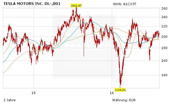 Fakt ist: Tesla ist das erste erfolgreiche amerikanische Start up im Automobilbereich der vergangenen 90 Jahren. Tesla ist und bleibe eine Wette. Der Kurs hat sich seit dem Tief bei 125 Dollar wieder aufgerappelt. WEr investiert ist, sichert sein Engagement mit einem Stopp bei 180 Euro ab. Ein Kauf kommt nach nach Ansicht von DER AKTIONÄR auf dem aktuellen Niveau nach wie vor nicht in Frage.