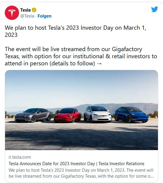 Die Tesla-Aktie hat sich in den letzten Wochen hervorragend entwickelt. Jetzt braucht Elon Musk neue Kurstreiber. Anleger und Analysten blicken gespannt auf den Investorentag, der am 1. März stattfinden wird.