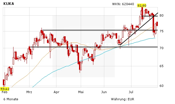 Die Aktie reagierte in einer ersten Reaktion mit Plus fünf Prozent. Zu Wochenbeginn war KUKA nach einer negativen Analystenstudie noch tief ins Minus gerutscht. Die Deutsche Bank fürchte, dass die Aktie von einer enttäuschenden Entwicklung in China betroffen sein werde.