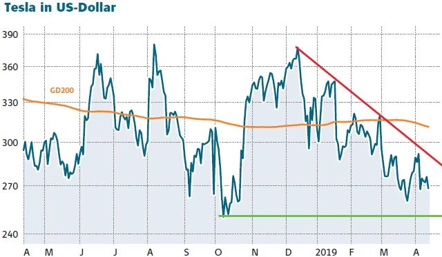 Die Leasing-Möglichkeit und die Car-Sharing-Ankündigung dürfte der Aktie heute Unterstützung verleihen. Derzeit ist die Aktie von Tesla noch immer in einem Abwärtstrend gefangen. Aus charttechnischer Sicht gilt es, diesen zu überwinden. Die nächste Hürde wartet bei gut 310 Dollar in Form der 200-Tage-Linie. Gelingt der Sprung darüber, würde ein neues Kaufsignal für die Aktie markiert.
