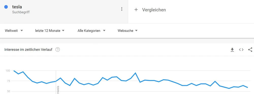 Interessant: Das Google-Trends-Interesse an Tesla ist auf ein 12-Monats-Tief gefallen. Ist die jüngste Auslieferungsenttäuschung kein Einzelfall? Zumal einige Kunden nicht nur auf den neuen Porsche Macan warten, sondern VW mit dem Trinity ab 2026 einen weiteren großen Margensprung vorbereitet. Ein wichtiger Faktor: 50 Einzelteile werden per Druckguss in einem Arbeitsschritt gefertigt und der Roboteranteil wird stark steigen.