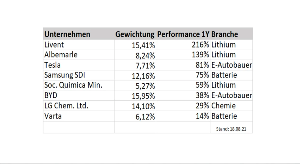 Die breite Mischung aus E-Autobauern wie Tesla, Batterieherstellern wie Varta und Lithiumproduzenten wie Albemarle machen den Basket zu einem trendstarken Index. Aktuell notiert der Index nur knapp unter dem Rekordhoch.