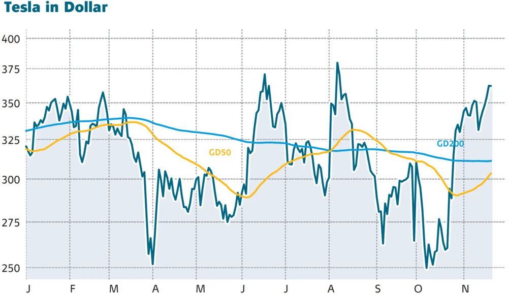 Bei Betrachtung des Chartbildes der letzten Wochen kommt bei Tesla-Anlegern Freude auf. Seit dem Tief Mitte Oktober konnte die Aktie um über 43 Prozent zulegen. Auch der wichtige Widerstand bei 350 Dollar wurde Ende letzter Woche überwunden. Spannend bleibt, ob die Marke langfristig hält. DER AKTIONÄR rät vorerst an der Seitenlinie abzuwarten.