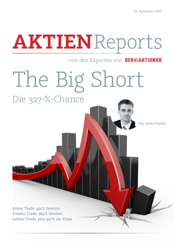 Den Namen des wankenden Riesen, die ausführliche Analyse sowie den passenden Optionsschein erfahren Sie im neuen Aktienreport von André Fischer. Nutzen Sie Ihre Chance.Sie wollen mit fallenden Kursen Geld verdienen? Dann ist WWW.SHORTSELLER.TRADE die richtige Option für Sie. Als SHORTSELLER-Abonnent erhalten Sie zusätzlich zu Ihrem Halbjahres- oder Jahresabonnement diesen und alle weiteren Aktienreports von André Fischer kostenlos.