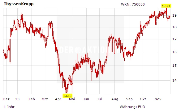 Dagegen äußert sich die DZ Bank deutlich skeptischer. Die Analysten haben die Einstufung für ThyssenKrupp nach Gerüchten über den Verkauf des US-Stahlwerks auf „Verkaufen“ mit einem Fairen Wert von 14,50 Euro belassen. Auch nach einem Verkauf des US-Werks an ArcelorMittal und Nippon Steel würde das wesentliche Problem, das brasilianische Werk, im Konzern bleiben, schrieb Analyst Dirk Schlamp in einer Studie. Er sehe weiter eine hohe Wahrscheinlichkeit für eine Kapitalerhöhung und bleibe bei seiner skeptischen Haltung zur Aktie.