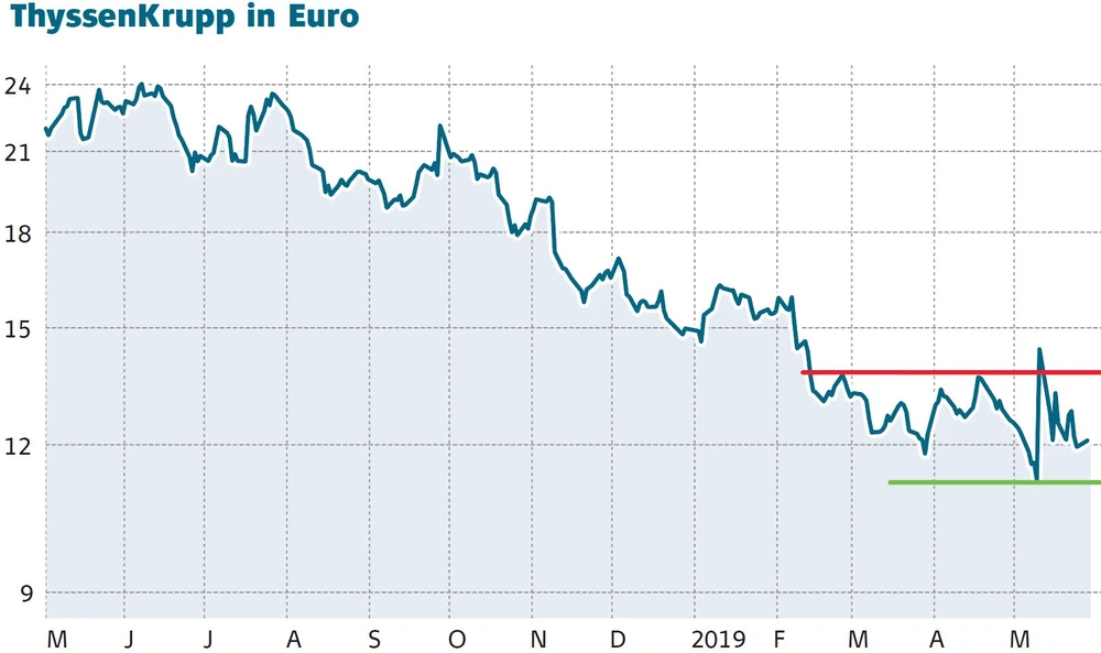 Im schwierigen Gesamtmarkt verpuffen die Signale derzeit. Die ThyssenKrupp-Aktie könnte durchaus noch einmal das Mehrjahrestief setzen. Mittelfristig sollte die niedrige Bewertung aber vor fallenden Kursen schützen. Alleine die Aufzugsparte ist deutlich mehr wert als das Konglomerat insgesamt. Anleger setzen mit einem Kauflimit bei 11,20 Euro auf dieses Szenario.