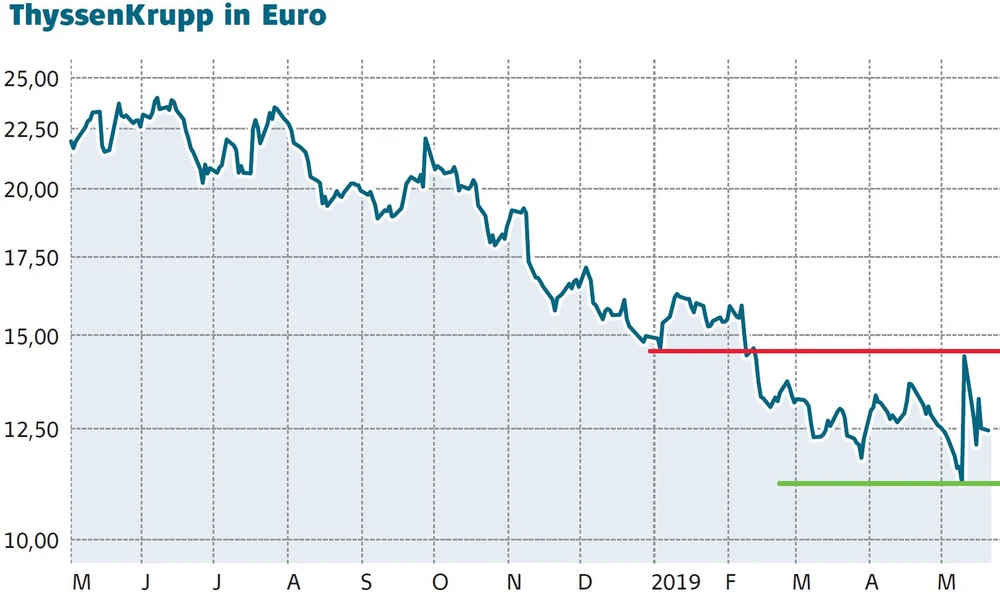 Sehr volatil zeigt sich derzeit die Aktie von ThyssenKrupp. Seit der Präsentation der neuen Strategie vor zehn Tagen verging kaum ein Handelstag, an dem das Plus oder Minus nicht mindestens fünf Prozent betragen hat. In dieser Woche wird nun der Aufsichtsrat über das Konzept für den radikalen Umbau beraten.