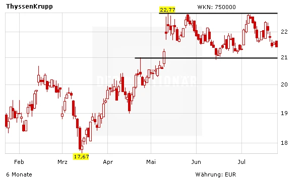 ThyssenKrupp treibt seinen Umbau zum Technologiekonzern weiter voran, wenngleich das Unternehmen wohl durchaus noch den einen oder anderen Rückschlag hinnehmen muss. Die Aktie hat sich in den vergangenen Monaten nach und nach erholt, zuletzt ist das Papier aber in eine Seitwärtsbewegung übergegangen.