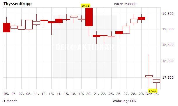 Das ging schnell: Bereits kurz nach Börseneröffnung hat ThyssenKrupp die Kapitalerhöhung erfolgreich platziert. Der Platzierungspreis für die neuen Aktien lag bei 17,15 Euro. Der Weg für einen Rebound der Aktie dürfte damit geebnet sein.