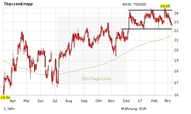 Der Widerstand der Arbeitnehmerseite war bereits bekannt. ThyssenKrupp-Chef Heinrich Hiesinger dürfte sich bei seiner Suche nach einer Lösung für die Stahlsparte davon nicht beirren lassen. Eine Fusion mit Tata oder ein eigenständiger Börsengang der Stahlsparte würden der Aktie neuen Schwung verleihen. Anleger setzen auf dieses Szenario und bleiben an Bord.