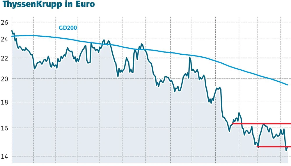 ThyssenKrupp bestätigte zwar die Prognose für steigende Gewinne. „Gleichzeitig nehmen aber konjunkturelle und politische Unsicherheiten zu“, warnte das Unternehmen auch. Ein Problem: Operativ schwächelte das Geschäft auf breiter Front. Die Autosparte rutschte in die Verlustzine, im Werkstoffhandel halbierte sich das Ergebnis. Beim Stahl war der operative Gewinn vor einem Jahr noch viermal so hoch und selbst die lukrative Aufzugssparte verdiente weniger als zuvor.