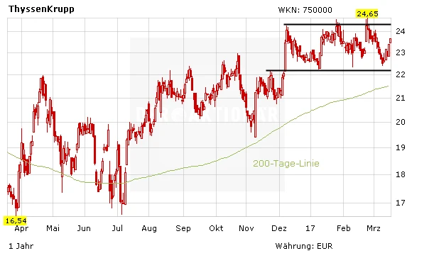 Am Freitag setzt die Aktie von ThyssenKrupp die Aufwärtsbewegung weiter fort. Positive Nachrichten kommen aus der Stahlbranche. Nachdem die Arbeitnehmer in der vergangenen Woche noch einen Warnstreik durchgeführt hatten, ist es nun zur Einigung im Tarifstreit gekommen.