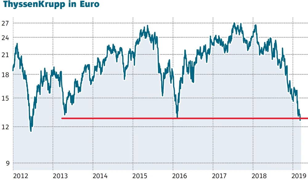 Die gescheiterte Fusion zwischen Siemens und Alstom hat gezeigt, dass es die EU-Kommission ernst meint. Ein Scheitern des Stahl-JointVenture scheint also durchaus möglich. Die ThyssenKrupp-Sparte hat sich zuletzt zwar gut entwickelt. Das Aus für den Tata-Deal wäre dennoch ein herber Rückschlag. Die dramatische Aktienentwicklung zeigt die Probleme des Konzerns. Anleger greifen nicht in das fallende Messer.