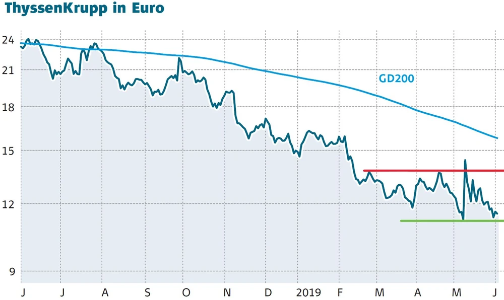 Das Potenzial ist bei ThyssenKrupp da. Doch die Probleme sind nach wie vor weitreichend. Aufgrund der niedrigen Bewertung können Mutige allerdings eine Spekulation wagen. Das Kauflimit des AKTIONÄR bei 11,20 Euro ist inzwischen aufgegangen. Anleger sollten allerdings im Hinterkopf behalten, dass aufgrund der Altlasten immer wieder Rückschläge drohen.