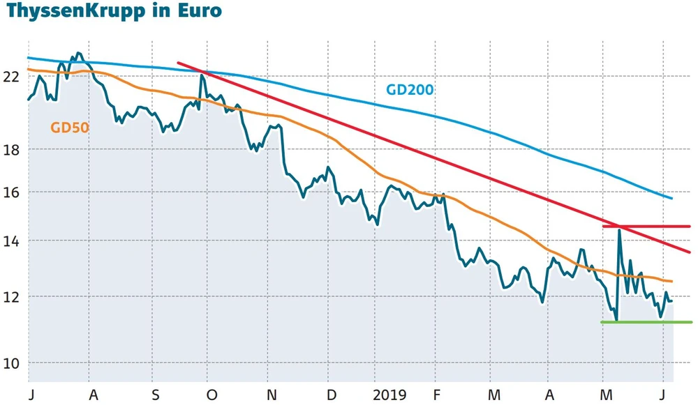 In Ausgabe 23/2019 hatten wir unseren Lesern für die Aktie von ThyssenKrupp ein Abstauberlimit empfohlen. Dieses Limit ist in der Zwischenzeit aktiviert worden. Jetzt wird sich zeigen, ob der Markt die Chancen, die ThyssenKrupp bietet, erkennt oder ob der jüngste Anstieg nur wieder eine Eintagsfliege war.