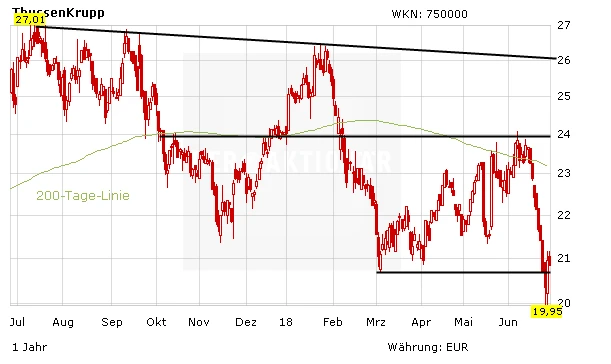 Die Aktie hat auf die bevorstehende Einigung mit einem deutlichen Plus reagiert. Das Chartbild hat sich damit wieder etwas aufgehellt. Kurzfristig könnte es nun in den Bereich von 24 Euro gehen. Auf lange Sicht steht die Aktie ohnehin vor einer Neubewertung. Der Stopp sollte bei 18 Euro platziert werden. DER AKTIONÄR spekuliert im Real-Depot mit einer Trading-Position auf steigende Kurse.