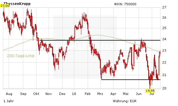 Nach dem Rücktritt von Aufsichtsratschef Ulrich Lehner hat sich das Chartbild bei ThyssenKrupp deutlich aufgehellt. Es bestehen aber nach wie vor zahlreiche unterschiedliche Interessen. Langfristig ist eine Neubewertung zwar weiterhin wahrscheinlich. Anleger können deshalb auch an Bord bleiben. Es wird aber viel Geduld benötigt.