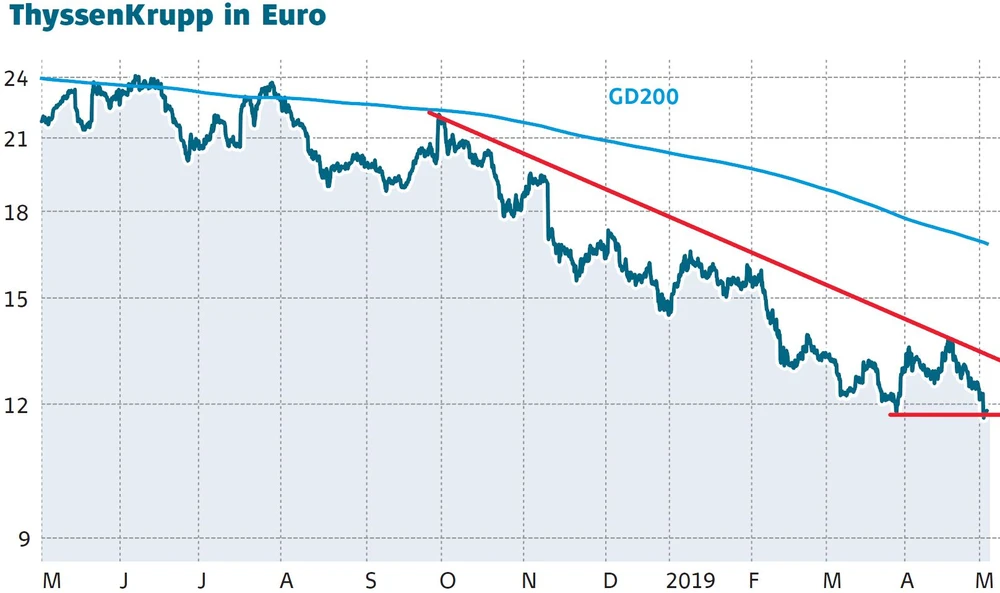 Allerdings ist der Konzern inzwischen nur noch 7,3 Milliarden Euro wert. Da alleine die Aufzugsparte etwa das Doppelte wert sein dürfte, erscheint die Bewertung attraktiv. Anleger setzen die Aktie auf die Watchlist, greifen aber nicht ins fallende Messer.