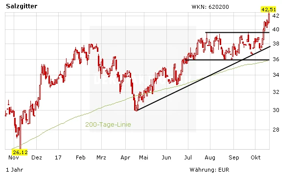 Durch die anstehende Fusion der Stahlaktivitäten von ThyssenKrupp und Tata sind die Aussichten für den Stahlmarkt tatsächlich wieder freundlicher. Das sollte sich auch in den Aktienkursen widerspiegeln. In der Stahlbranche bevorzugt DER AKTIONÄR Salzgitter. Nach dem charttechnischen Ausbruch wird hier im Hebel-Depot mit Hebel auf steigende Kurse spekuliert. Bei ThyssenKrupp warten die Anleger dagegen auf eine Einigung mit den Arbeitnehmern. Mittelfristig steht die Aktie vor der Neubewertung. Steigende Kurse scheinen eine Frage der Zeit zu sein.