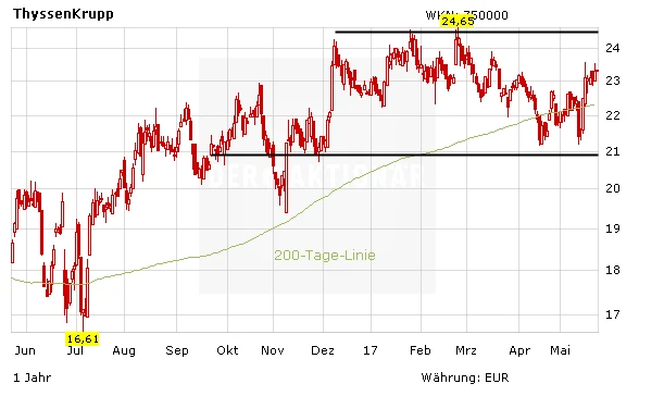 Steigende Stahlpreise sind grundsätzlich ein gutes Zeichen. Unter den deutschen Werten ist vor allem Salzgitter abhängig von deren Entwicklung. Auf dieser Seite würde auch eine Fusion von ThyssenKrupp und Tata Steel weiteren Schwung verleihen. Anleger bleiben sowohl bei Salzgitter als auch bei ThyssenKrupp an Bord. Beim DAX-Konzern wäre bei einem Abschluss der Verhandlungen ohnehin eine Neubewertung nötig. Dann wären sogar Kursziele im Bereich von 30 Euro möglich.