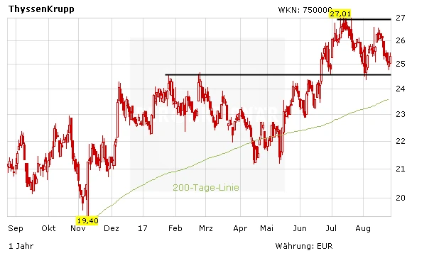 Bei der Deutschen Stahl AG spielt Salzgitter das Zünglein an der Waage. Nach wie vor sträubt sich der Konzern gegen eine Konsolidierung. Da die Tata-Fusion durch die Einmischung der Politik ebenfalls problematischer wird, wächst der Druck auf ThyssenKrupp-Chef Heinrich Hiesinger. Er will ThyssenKrupp um jeden Preis umkrempeln, als Plan B könnten sogar die lukrativen Technologiesparten abgespalten werden. Egal in welcher Form der Umbau kommt: Die Aktie steht vor einer Neubewertung. Höhere Kurse sind möglich.