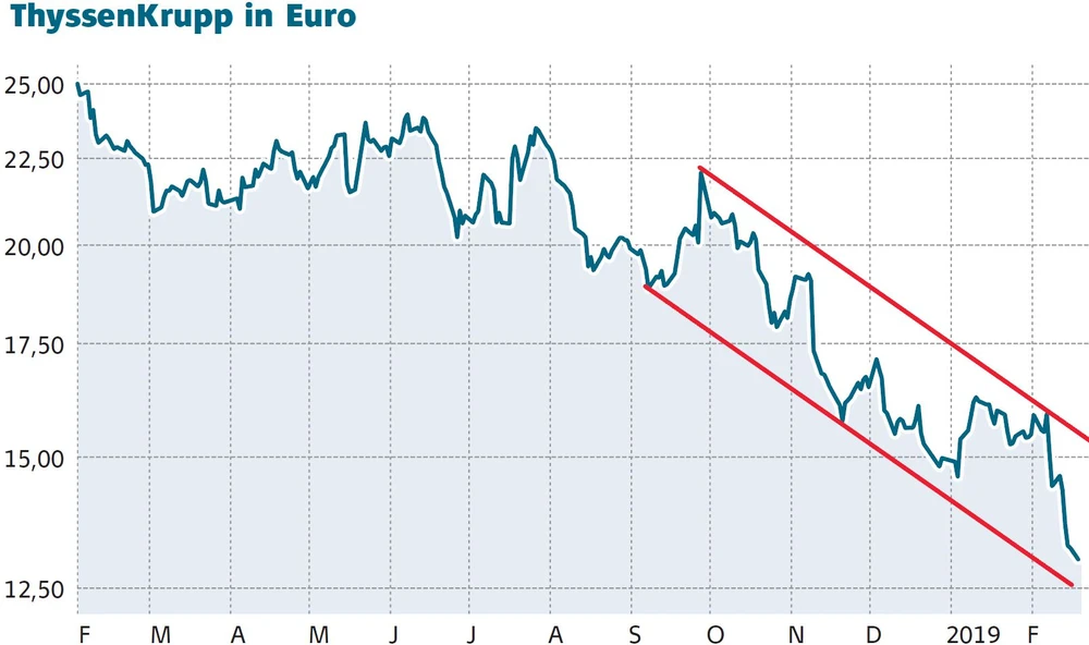 Die Talfahrt bei ThyssenKrupp setzt sich fort. Auch heute gehöhrt die Aktie wieder zu den größten Verlieren im Dax. Der Vorstandsvorsitzende Guido Kerkhoff treibt die Konzernaufspaltung voran. Koste es, was es wolle. Die Teilung des Konzerns will er notfalls auch ohne das auf der Kippe stehende Joint Venture mit Tata Steel durchziehen.
