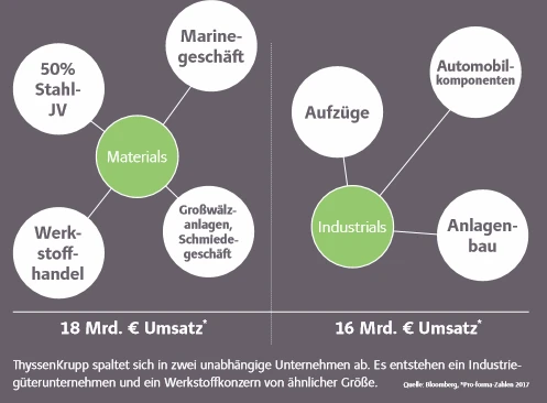 Denn das Unternehmen steht vor großen Umbrüchen. Das Joint Venture mit dem indischen Tata-Konzern soll in der neuen „ThyssenKrupp Materials AG“ ein neues Zuhause finden. Dieses Unternehmen wird aus der Aufspaltung des Traditionskonzerns in einen Wertstoffkonzern (Materials) und ein Industriegüterunternehmen (ThyssenKrupp Industrials AG) entstehen. Bis Ende des laufenden Geschäftsjahres (September 2019) soll die Aufteilung vollzogen sein. Eine mögliche Umbenennung der zwei unabhängigen Unternehmen mit Kunstnamen wurde von Kerkhoff unterdessen verneint. Beide Unternehmen werden den Namen ThyssenKrupp tragen.