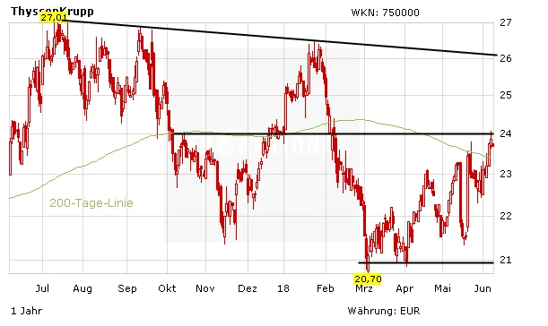 Im schwachen Marktumfeld hat die Aktie negativ auf die Gerüchte reagiert. Langfristig sollte es sich aber auszahlen, wenn sich ThyssenKrupp auf weniger Spezialbereiche fokussiert. Die Sparten sind einzeln mehr wert als das Konglomerat. Die Aktie steht dann vor einer Neubewertung. Spekulative Anleger steigen ein, brauchen aber weiter Geduld.