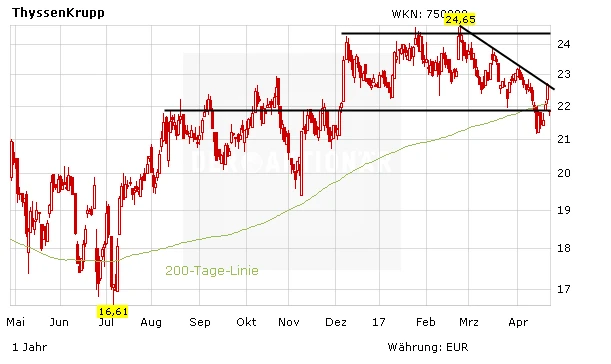 Ein neuer Großauftrag wäre positiv für TKMS. Auch ein möglicher Imageschaden sollte nicht so dramatisch ausfallen. Im Fokus der Anleger bleibt aktuell aber die Stahlsparte. Überkapazitäten und der Protektionismus in den USA belasten. Mit Outokumpu und vor allem US Steel haben zudem zwei Wettbewerber bei der Bilanzvorlage enttäuscht. Hoffnungsträger bleibt die Tata-Fusion. Investierte Anleger beachten den Stopp bei 19,50 Euro.