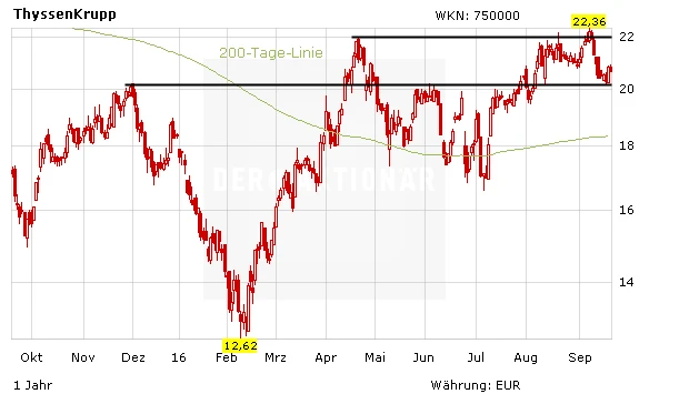 Neben der Entwicklung der Stahlpreise spielt bei der Kursentwicklung auch die Konsolidierung in der Branche eine wichtige Rolle. Nach wie vor ist offen, wie es hier weitergeht. Salzgitter bleibt eine Halteposition mit Stopp bei 22,50 Euro. DER AKTIONÄR bevorzugt ThyssenKrupp. Gelingt im nächsten Anlauf der Ausbruch über das Jahreshoch, gibt es ein Kaufsignal. Der Stopp für investierte Anleger liegt bei 17,20 Euro.
