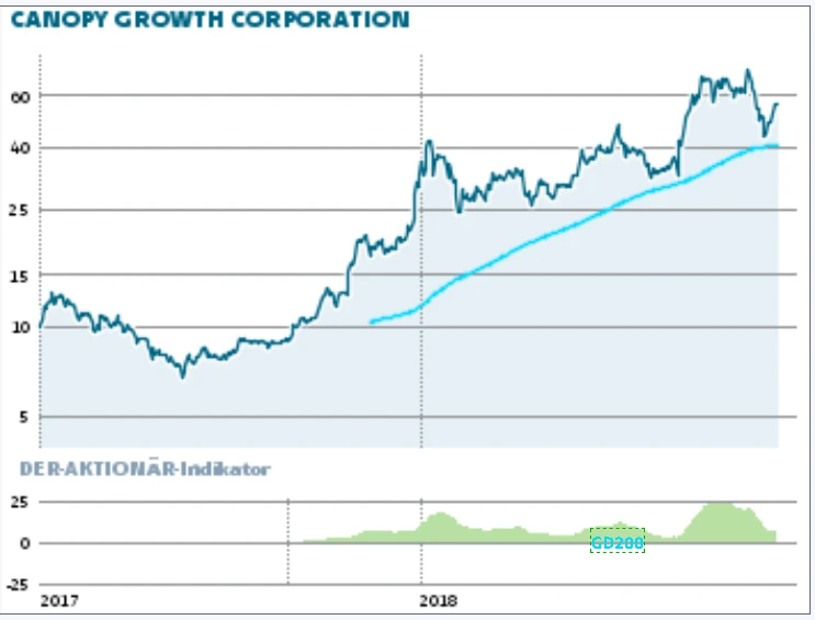 Nachdem die Schwergewichte der Cannabisbranche wie Canopy Growth, Tilray und Aurora nach dem 17.Oktober deutlich Federn lassen mussten, kehrt die Kauflust der Anleger nach den positiven News wieder zurück. Canopy Growth sieht charttechnisch sehr spannend aus. Die Aktie konsolidierte vom Hoch bei 76,20 CAN-Dollar exakt bis auf die 200-Tage-Line bei 42,10 CAN-Dollar. Aktuell notiert das Papier bereits wieder bei 57,07 CAN-Dollar.
