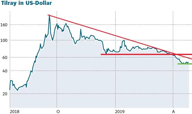 Die Aktie von Tilray hat von der starken Entwicklung der Branche in den vergangenen Wochen nicht profitieren können. Im Gegenteil, das Papier hat weiter deutlich nachgegeben. Mittlerweile ist die Aktie aber auf ein durchaus interessantes Niveau gefallen. Allerdings sollte man vor einem Investment eine Bodenbildung sowie den Aprung über den langfristigen Abwärtstrend abwarten.