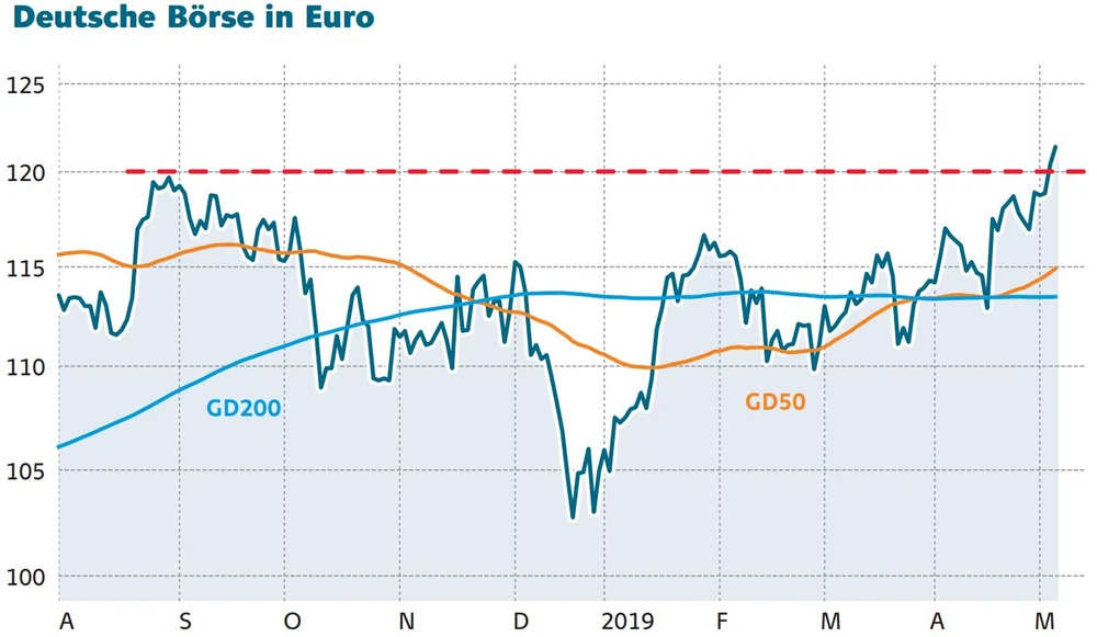 Sollte der Ausbruch über das bisherige Allzeithoch gelingen, wartet auf die Anleger eine Beschleunigung des jüngsten Aufwärtstrends. Rein theoretisch könnte der Kurs bis 130/2 Euro laufen, also rund zehn Prozent. Für diesen Fall bietet sich ein Faktor-Zertifikat an.