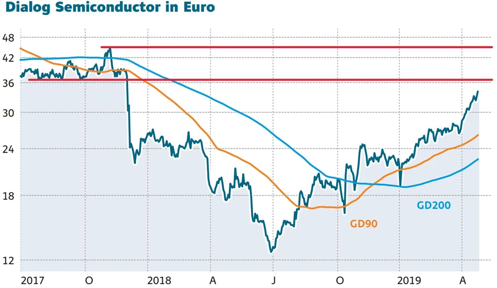 Nach dem Sprung auf ein neues Zwischenhoch dürfte die Dialog-Aktie als nächstes den Widerstand bei 36 Euro in Angriff nehmen. Im besten Fall wird in den kommenden Wochen auch die Marke von 40 Euro angetestet. Ein weiterer starker Widerstand liegt bei 44 Euro.
