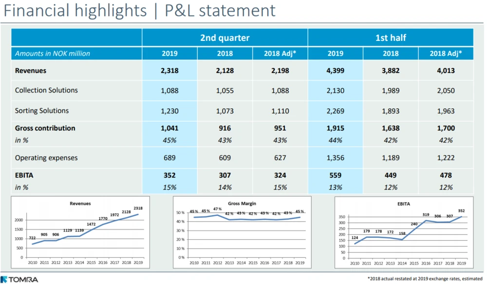 Tomra Systems hat die Zahlen für das zweite Quartal 2019 veröffentlicht. Der Umsatz liegt leicht unter, das EBITA etwas über den Schätzungen – die Aktie verliert gut zwei Prozent. Doch das ist kein Beinbruch. Tomra gehört schließlich mit den sensorbasierten Sammel- und Sortierlösungen die Zukunft.