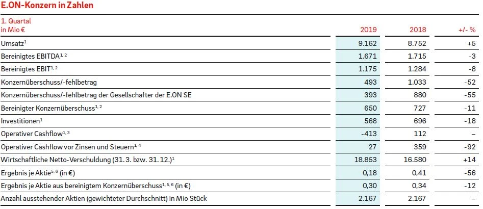 Die geplante Übernahme des Konkurrenten Innogy sieht E.on im Zeitplan und zeigte sich zuversichtlich, die erforderlichen Genehmigungen in der zweiten Jahreshälfte zu erhalten. Die EU-Kommission prüft die Übernahme vertieft und will bis Ende August darüber entscheiden.