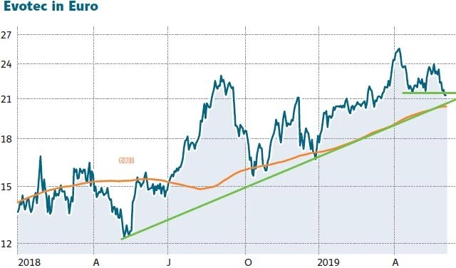 DER AKTIONÄR sieht die Aktie von Evotec weiterhin ganz klar als einen der besten europäischen Biotech-Werte. Wie bereits des Öfteren erwähnt, sind größere Rücksetzer hier gute Kaufchancen. Anleger, die der Empfehlung des AKTIONÄR im Oktober vergangenen Jahres gefolgt sind, liegen derzeit gut 26 Prozent in Front. Mittelfristig sieht DER AKTIONÄR bei der Evotec-Aktie Potenzial bis in den Bereich von 30 Euro. Allerdings wird man weiterhin einen volatilen Kursverlauf einplanen müssen.
